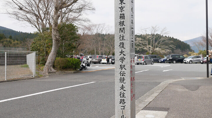 ミュージアムから箱根ホテル側に2分ほど歩いたところには、第一回大会からの歴代優勝校の名前と記録が台座に刻まれた「箱根駅伝記念碑」があります。