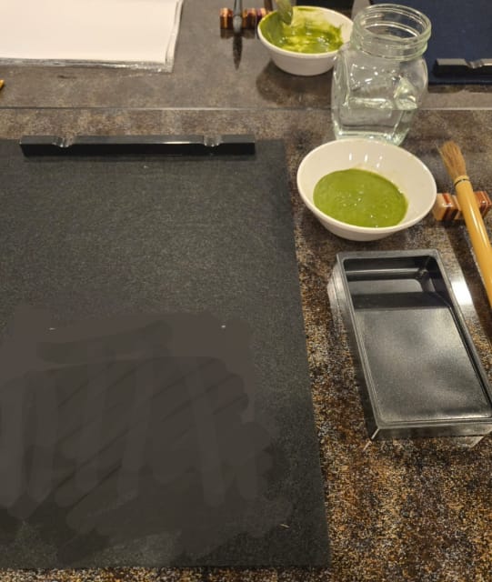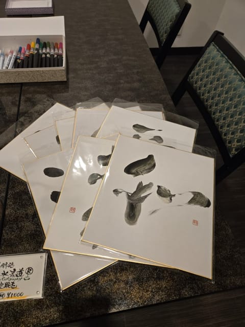 お風呂のあとは特別な温泉水書道Ⓡの体験です。