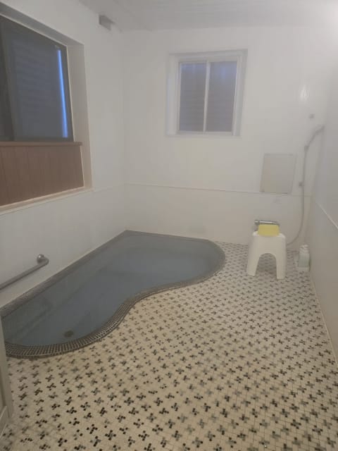 カーブがついた浴槽がなんともレトロな雰囲気、小さなタイルの模様も可愛らしいです。大きめのお風呂をあらかじめ予約しておきましたので到着してすぐに入ることが出来ました。