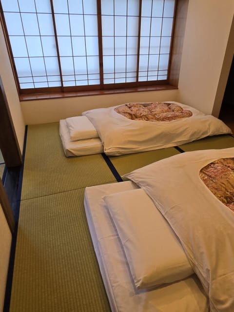 もう一部屋には、女将が心地よい眠りのために厳選されたというお布団が敷かれていました。