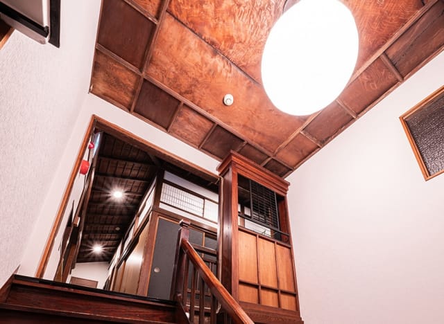 木造三階建て、磨かれた階段や1本梁や天井など古民家の雰囲気もありつつお部屋は改装されとても綺麗です。