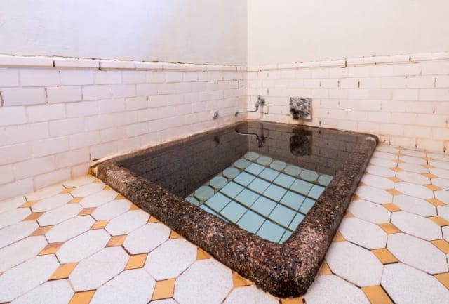 浴槽の中からお湯が出ていて縁から溢れるお湯で洗い場の床も温かく冬にはありがたい。