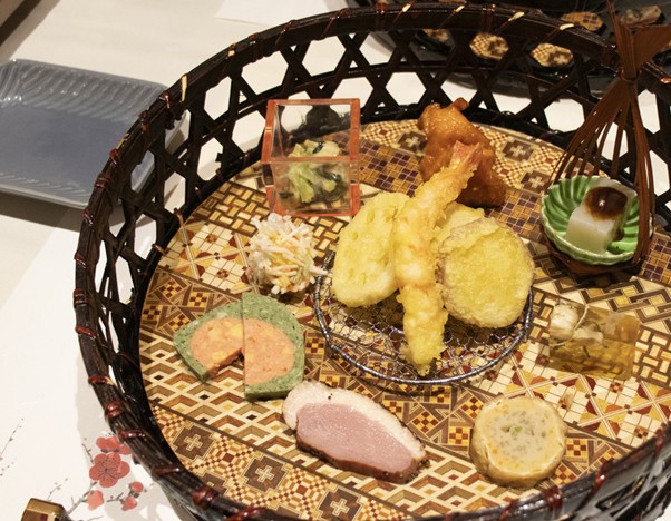 鴨のロースに、ふぐの煮凝り、えびと季節野菜・豆腐の天ぷら、ほうれん草のテリーヌ……。どれから食べようか迷ってしまうほどのラインナップですよね!お酒が大好きな友人は、お料理に合わせてビールや日本酒を楽しんでいました。