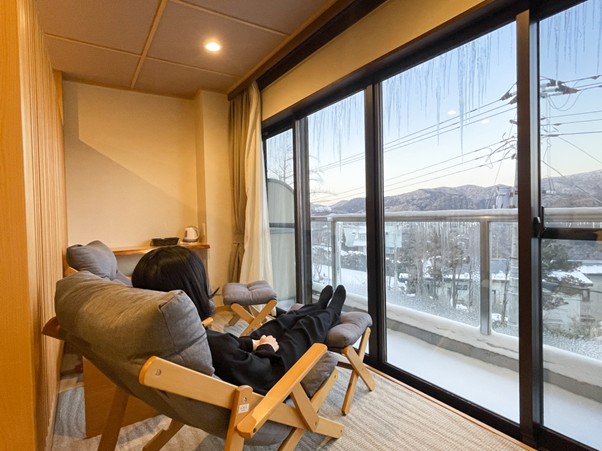 大涌谷の温泉!肌に「乳白色のベール」をまとうそれらを眺めながらソファに身を委ねていると、あまりの心地よさに、いつの間にかうとうとしてしまいました。