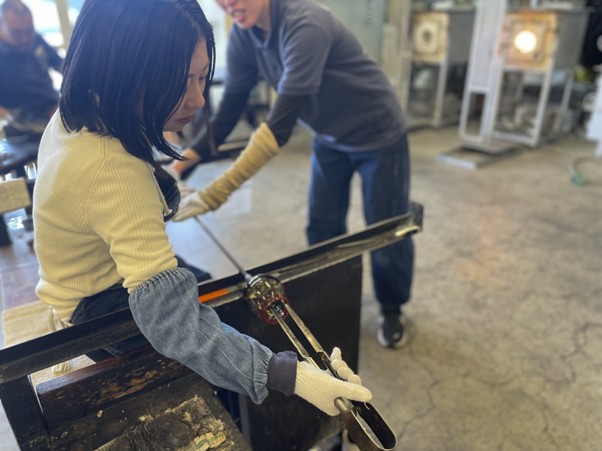「ふーっ」と息を吹き込んでグラスを膨らませていくところは、意外と難しい……!