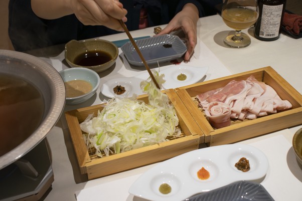 メインは「さがみあやせポーク」という、神奈川県綾瀬市・秦野市で育つ高品質なブランド豚を使用した、しゃぶしゃぶ。そんな温かなコミュニケーションも、旅の醍醐味ですよね!