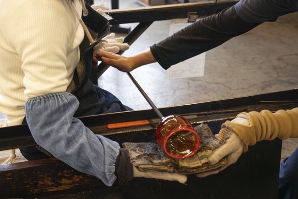 私たちは、旅での「体験」が大好き。過去には、浅草での染め物体験、箱根の寄木体験などにチャレンジしています。「吹きガラス体験」は、今回が初めて。