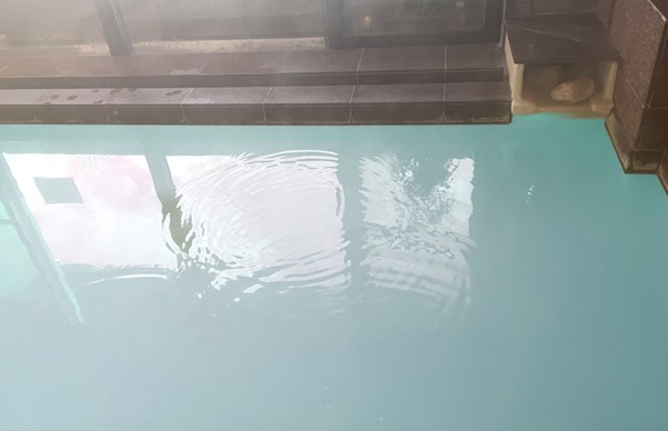 大浴場に一歩足を踏み入れると、そこには乳白色の柔らかな温泉が!