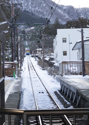雪の中から浮かび上がるような箱根登山ケーブルの姿が見えた時は、思わずホッとしました。