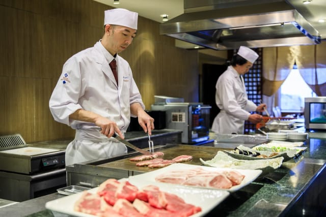 夕食は基本の和食膳とビュッフェ、オープンキッチンで作っていただけるおかわり自由な天ぷら、ステーキ付きの山里プランでした。タッチパネルから注文できるので、気兼ねなく頼めちゃいます。